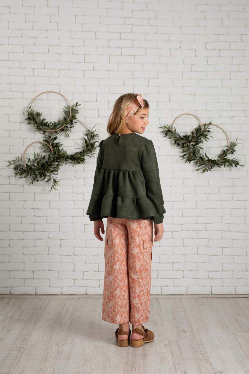 Una colección confeccionada en tejido viella estampada camuflaje. La cinturilla es un trenzado de la de colores.