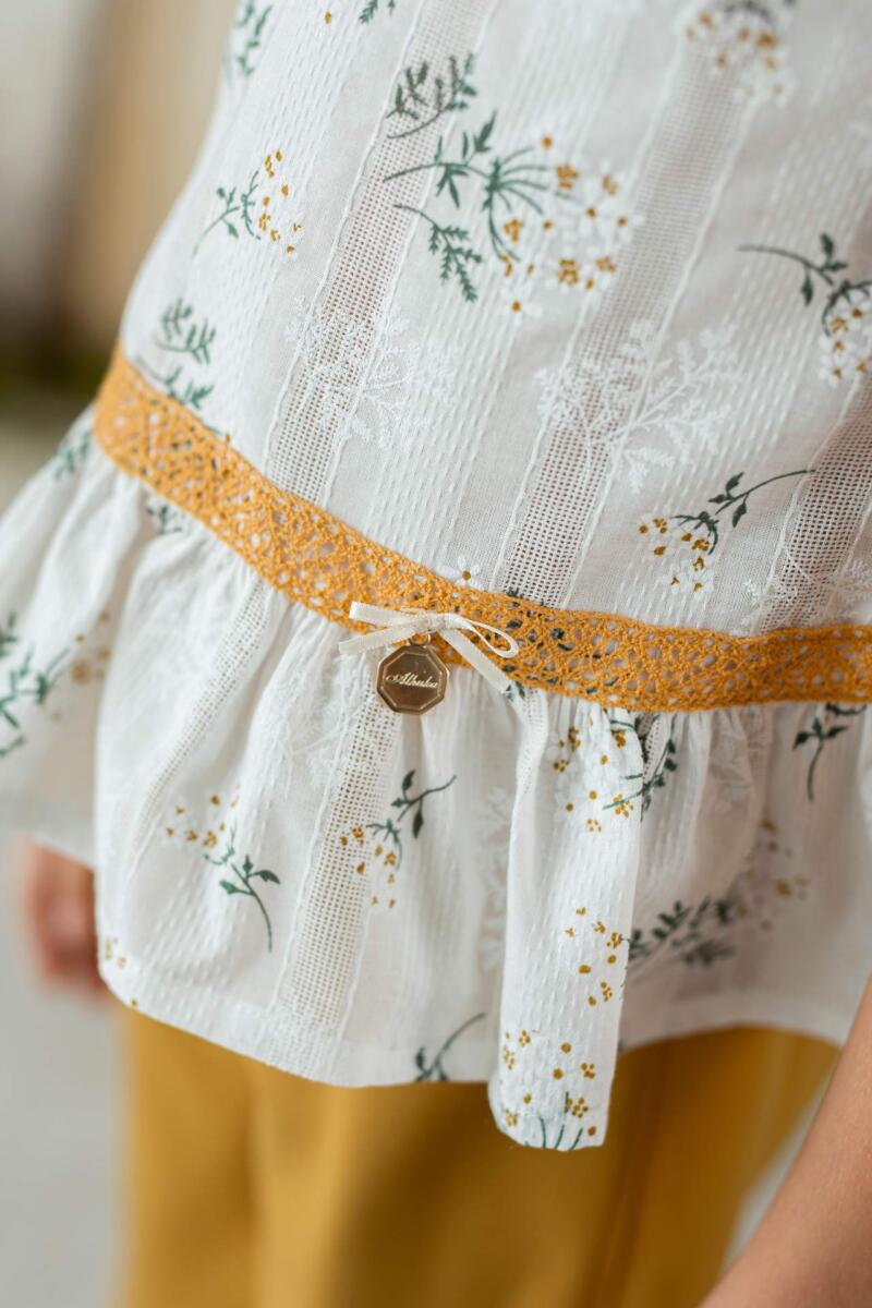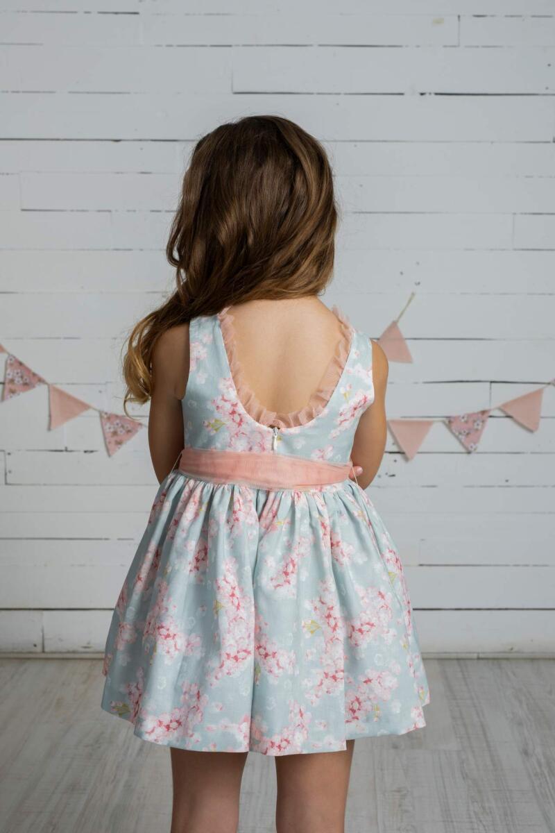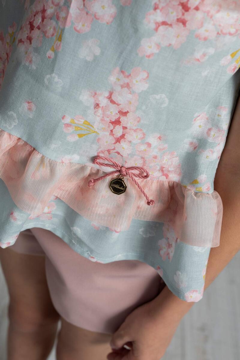 Una colección ideal como 2º vestido de Comunión, incluso para hermanas de Comunión. Es una colección súper elegante en lino con estampado floral y con detalles en tul rosa.